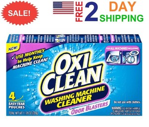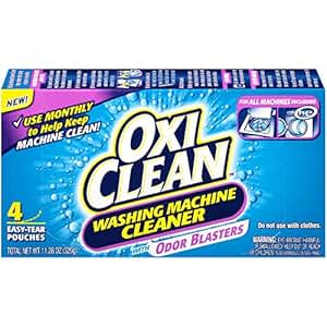 One 4 count box of oxiclean washing machine cleaner with odor blasters helps remove odor causing residues in any washer one pouch once a month helps keep your washing machine clean